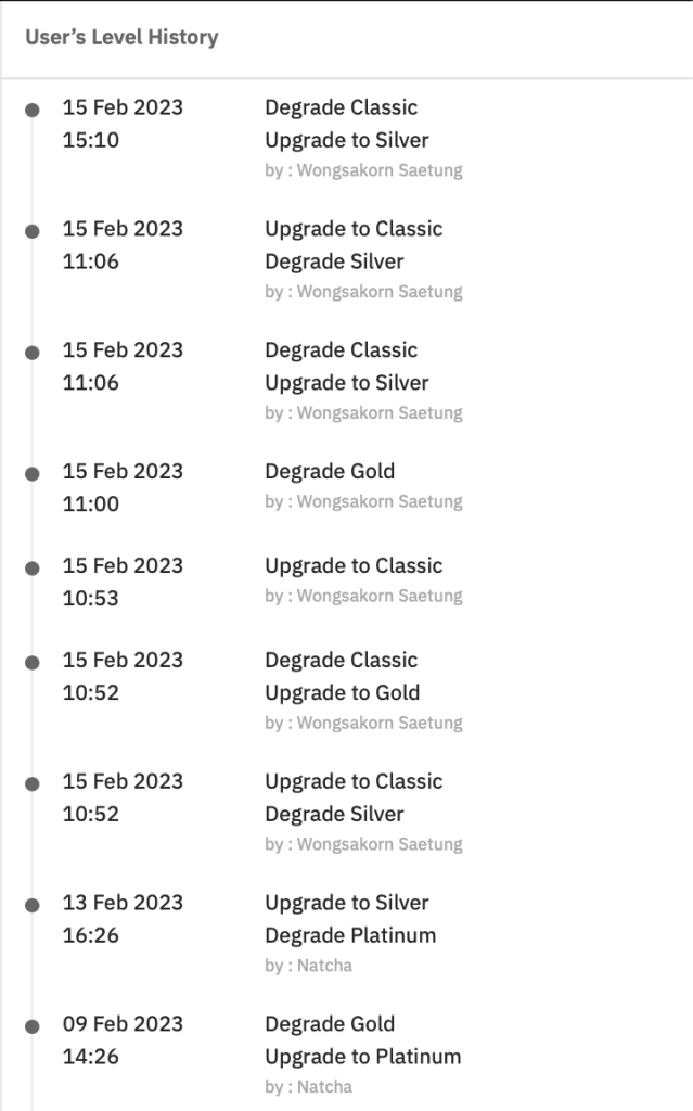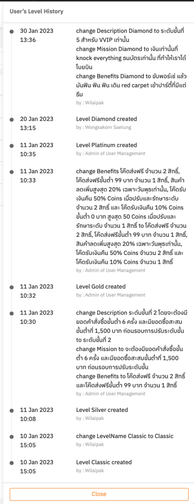 - Display items, revised date, and time – Check who’s responsible for decreasing user’s level