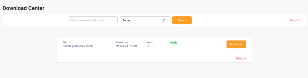 Display all download lists from user list menu, coupon tab, purchase, redemption, and wallet by exporting to .CSV to create edm
