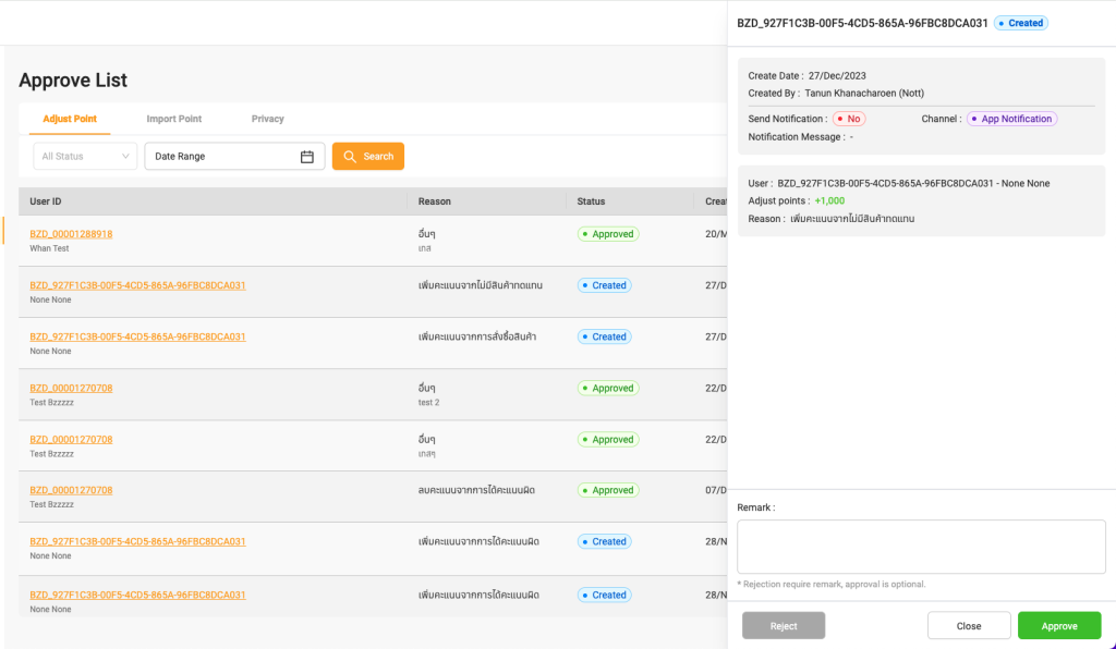 Approve increase points to multiple customers simultaneously and download the list of users who cannot have points added.