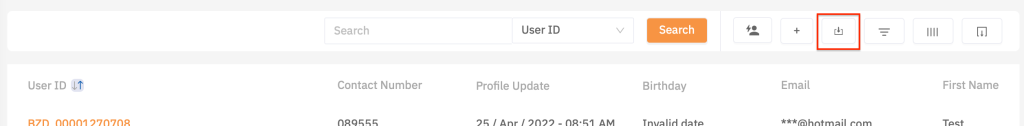 เป็นหน้าแสดงรายการ downlond ทั้งหมดจาก menu user list, tab coupon, purchase, redeem และ wallet โดยจะ load ออกมาเป็น .csv และสามารถนำไปทำ edm ได้