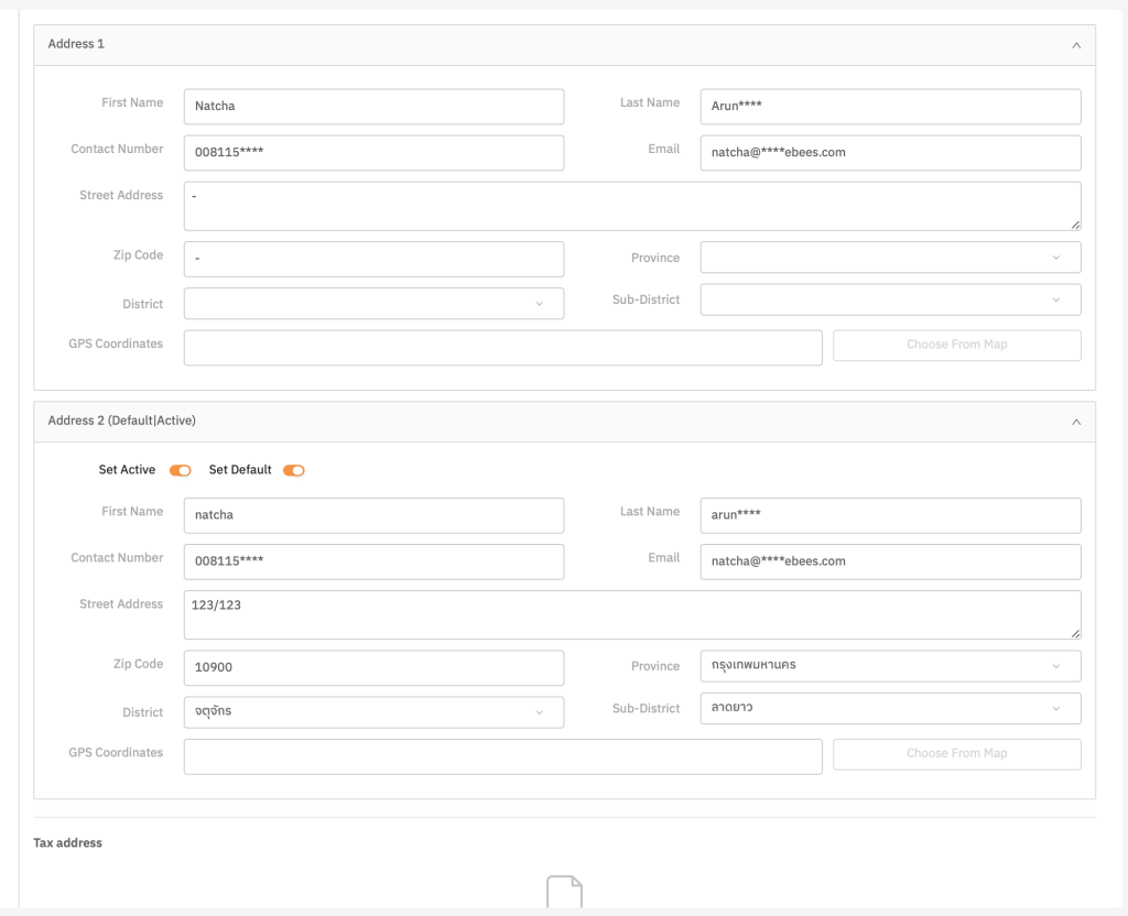 - Tax address = ข้อมูลใบกำกับภาษีของลูกค้า (End user)