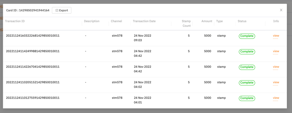- สามารถ export transaction detail (Card ID)