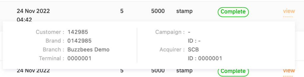 - เมื่อกด link Card ID จะเป็น popup แสดงรายละเอียดของการใช้จ่ายในแต่ละ Transaction (Payment) นั้นๆ โดยบัตรจะแยกเป็น 2 ประเภทคือ