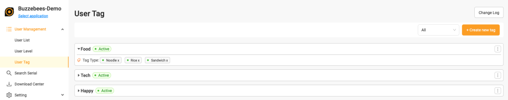 Menu User Tag เป็นหน้าการจัดการ tag ทั้งหมดของ application นั้นๆ