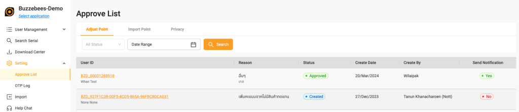 Approve List (For adjust point)